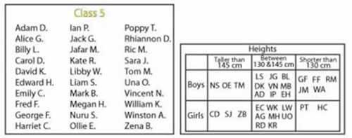 There are thirty children in Class 5. All the first part of the summer term they had been doing a project collecting data about themselves and making all sorts of lists, charts and graphs to present it.
