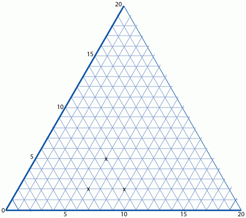 The marked points are (6, 2), (6, 5) and (9, 2). When joined they form an equilateral triangle.