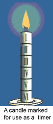 Candle ClocksMarked candles were used for telling the time in China from the sixth century CE. There is a popular story that King Alfred the Great invented the candle clock, but we know they were in use in England from the tenth century CE. However, the rate of burning is subject to draughts, and the variable quality of the wax. Like oil lamps, candles were used to mark the passage of time from one event