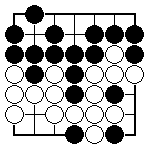 The second method of scoring is called territory scoring . It involves smaller numbers, but two for each player: a count of empty territory, and the number of the opponent's stones taken. In fact in this game Black had taken three of White's stones; and White had taken two of Black's, to which we add the three hopeless stones in the diagram for a total of five.