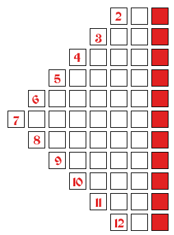 Place counters on the squares numbered 2 to 12. Roll two dice and add to decide which player moves forward one square. The game should be played several times and discussion about the fairness of the game encouraged.