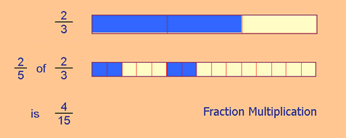 - 2/5 of 2/3 would be . . . 2/15 from the first third, then another 2/15 from the second . . . in other words: 4/15