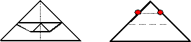 - Fold the tip of the flap down again, this time just to the fold you made in step 2. Unfold it again and make sure you can see the two points marked with red dots below.Image