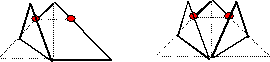 - Fold the corners up as shown below to meet the red dots.Image