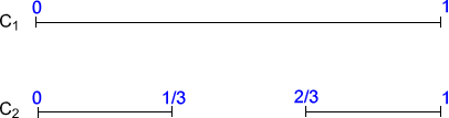 If we suppose that the end points of $C_1$ are 0 and 1, then we can mark on the end points of the line segments for the later $C_n$ too. For example, $C_2$ has end points $0$, $\frac{1}{3}$, $\frac{2}{3}$ and $1$ as shown below.