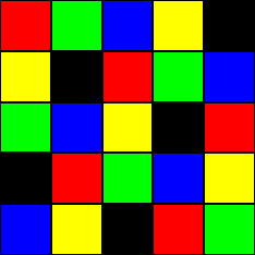 Can you put the 25 coloured tiles into the 5 x 5 square so that no column, no row and no diagonal line have tiles of the same colour in them?