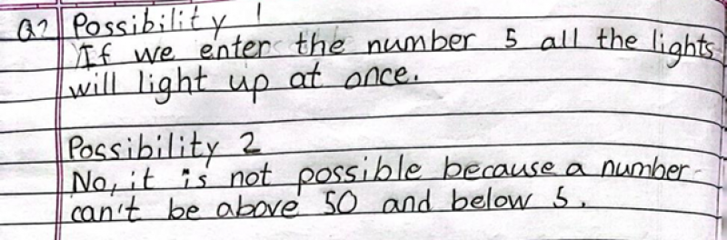 Josh from Patterson Elementary in the USA explained why all four of the lights would never be on in their interactivity: