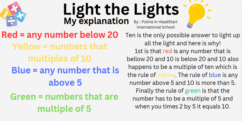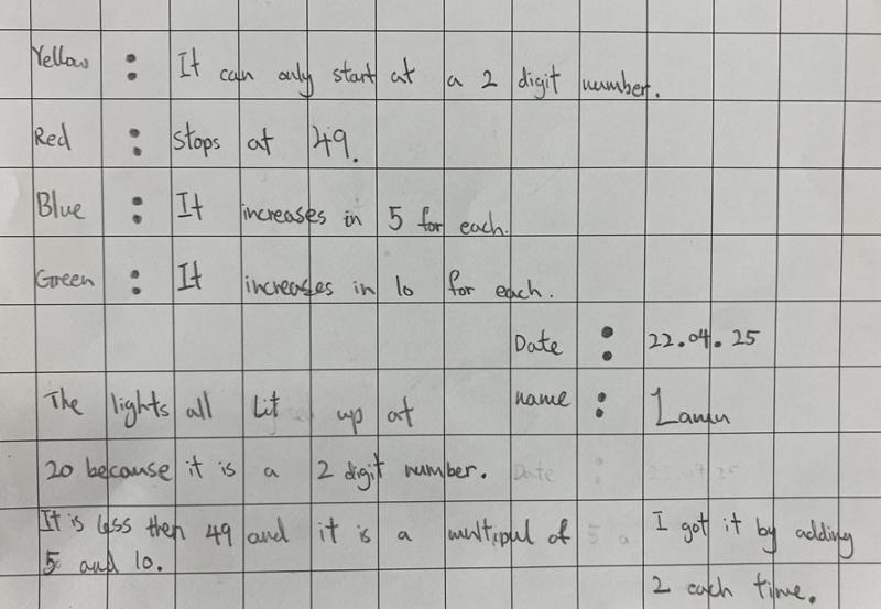 Well done to everybody who worked out which rules made the lights turn on. We were sent some solutions which just described the rules for each light, but we've focused here on the solutions that explained in more detail what was going on.