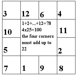 There are seventy eight prisoners in a square cell block of twelve cells. There is one prisoner in one of the cells, two in another cell, three in another, four in another and so on up to twelve prisoners in one of the cells.