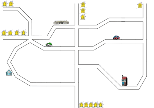 Starting at your house, try to describe the journey to each of the six places.