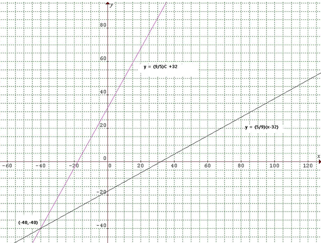However, if you start with a negative number, multiplying it by $9/5$ decreases it, and adding $32$ increases it, so I realised that with the correct number, Celsius and Fahrenheit might be the same.