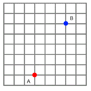 Imagine two friends live where the red and blue dots are on the grid.