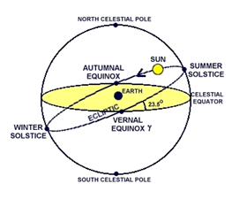 This website shows a series of diagrams with explanations of the principal properties of the celestial sphere and the ecliptic: http://hyperphysics.phy-astr.gsu.edu/hbase/Eclip.html