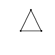 Hopefully you've seen by now how these questions relate to graph theory. We are asked to draw certain graphs such that none of the edges overlap. We call the graph with $n$ vertices and every possible edge (that is, any two vertices are joined), the complete graph on $n$ vertices, and write this as $K_n$; for example, $K_3$ is the triangle shown above. So the first game was asking us to draw $K_4$ and $K_5$ in such a way that the edges don't overlap.