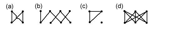 I am going to impose two additional restrictions, namely that a graph may not contain any loops (edges from a vertex back to the same vertex) or multiple edges (between any two vertices, there may be at most one edge). So graphs (d) and (e) above are not allowed. Some writers call graphs with these restrictions simple graphs , but since they are the only graphs we shall be using in this article, when I say "graph" I shall always mean "simple graph". Another useful concept is that of connectedness. A graph is connected if, given any two vertices, there is a path from one to the other in the graph (that is, an ant starting at any vertex can walk along edges of the graph to get to any other vertex). So graphs (a) and (b) above are connected, but graph (c) is not.