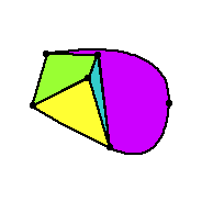 Just before I tell you what Euler's formula is, I need to tell you what a face of a plane graph is. A plane graph is a drawing of a planar graph. A face is a region between edges of a plane graph that doesn't have any edges in it. (We don't talk about faces of a graph unless the graph is drawn without any overlaps.) For example, each face of this graph is coloured differently: