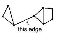 Let us now suppose that the result is true for any graph with at most $k$ edges, and consider a graph with $E=k+1$. We have to be slightly careful at this point: what we'd like to do is to remove one edge, see what happens to the number of faces, and use the inductive hypothesis. However, it is possible that removing an edge would disconnect the graph, like this, for example: