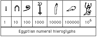 From as early as 1800 BC, the Egyptians were writing fractions. Their number system was a base 10 idea (a little bit like ours now) so they had separate symbols for 1, 10, 100, 1 000, 10 000, 100 000 and 1 000 000. The ancient Egyptian writing system was all in pictures which were called hieroglyphs and in the same way, they had pictures for the numbers: