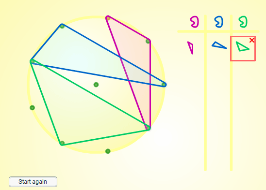 For each of the problems on the site the environment was set up with a particular starting point in mind (eg a circular geoboard with ten pegs: nine around the edge and one in the middle). Downloadable sheets with different numbers of pegs are also available on the site. Of course, a set of nine-point plastic geoboards for hands-on experimentation would also be a great advantage.