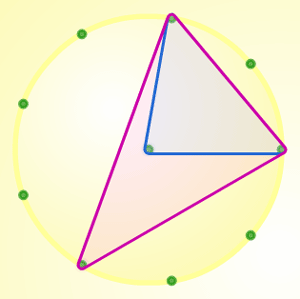 constructed isosceles triangles and used them to calculate angles. Other groups became engaged in ensuring that they could find all the triangles first, with some of them wanting to generalise the rule for the number of triangles for any point-circle and comparing their findings with those for the isosceles triangles.