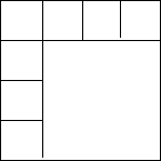 A student might very well convince himself of the truth of the argument "IF I can cut a square into n smaller squares, THEN I can cut the square into n- 3 squares". He might even convince a friend by showing pictures such as figure 3. But an enemy might put up figure 4, where a square is cut into eight smaller squares (seven the same size, plus one bigger one). Here there is no set of four smaller subsquares in a group which can be amalgamated into one larger square to reduce the eight sub-squares to five sub-squares.