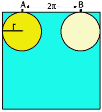 Let us look at a simple example. Suppose that the tray is square with each side having length $2+2\pi$, as in the following figure. On each side of the tray the disc rolls a distance of $2\pi$. As the length of the circumference of the disc is also $2\pi$ the point on the disc that is in contact with the point $A$ is the same as the point in contact with $B$. You should now convince yourself that if the disc starts at $A$ and rolls once around the tray, then when it is again in contact with $A$, the same point of the disc is in contact with $A$. The motion has period one.