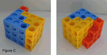 Adding another building block you get the solid on the left in Figure C. The picture on the right is just a different view of the solid shown on the left.