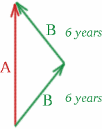 the diagram below. Poor Alf concludes that the birthday greetings sent yearly will be received by Ben at intervals of one and a quarter years, according to Alf's clock.