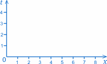 In this section, we shall draw some graphs which look very similar to those in the previous section, but their meaning will be rather different. We still have two axes, and the one labelled $x$ still represents distance in a certain direction. However the one that was labelled $y$ is now labelled $t$, which represents time, measured in seconds say.