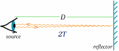 sent and when it is received back, defines the ticks of the clock; they occur at time $2T$ apart, where \begin{equation} {T} = {D/c} \end{equation} with $c$ representing the speed of light. (Remember that speed = distance/time, so time = distance/speed.)