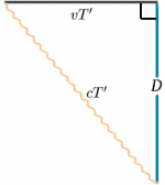 \begin{equation} {D} = {cT}\quad (7) \end{equation} Like time, distance is a quantity where the result of the measurement depends on the way the observer is moving.