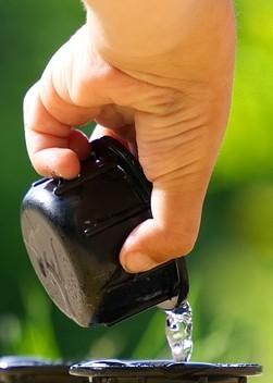 Pour one cupful of coloured water into each of some tall, thin and short fat transparent containers. Discuss what happens to the water level in each and why.