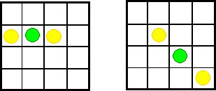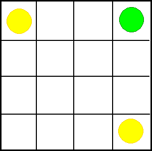 You need three counters - two the same colour, and a 4 x 4