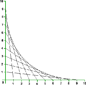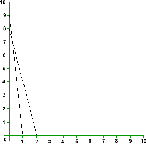 - Join the 1 on the x-axis to the 9 on the y-axis with a straight
