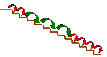 A staircase with 12 steps, with arrows to show either one or two steps at a time. The arrows are used to represent the example given above.