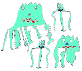 One day four of these creatures, two Zios and two Zepts, sat on the summit of a hill to count the legs of the creatures they could see. One looked to the East, one to the West, one to the South and one to the North.