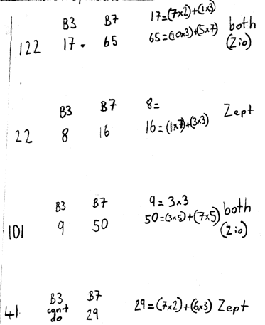 Zios count in base 3 so their numbers are grouped like this (we shall only look at the first three columns):