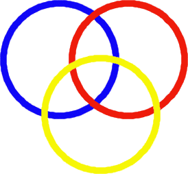 On the other way, if there are 4 in the blue, 2 are in the middle and 2 are not. For 3 hoops, we had 0 in the middle first and then 1 in the middle, next 2 and lastly 3. This way we didn't have two solutions the same. We worked out 14 solutions and we think we found them all.