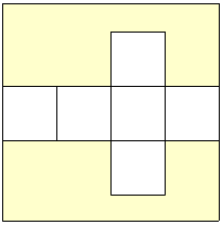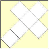 However, this is not the most efficient net. The traditional net has a 3 $\times$ 4 bounding rectangle - the smallest rectangle that it will fit in. The most efficient net will have a bounding rectangle that is a square. That net is shown in the diagram on the right which fills 75 per cent of the square.