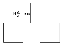 I can see $14\frac{2}{3}$ faces on this arrangement. See if you can work out how I counted them, then click on the button below to check your answer: