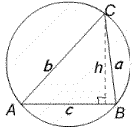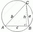 When AB is a diameter angle $ACB$ is 90 degrees so we can use Pythagoras' Theorem. The area of the triangle is given by $\textstyle{1\over 2}ab = \textstyle {1\over 2}ch$ where $h$ is the length of the perpendicular from $C$ to $AB$. Then