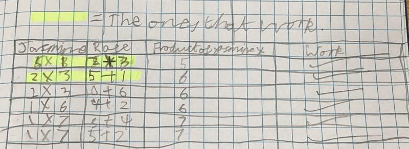 1, 5 1+5=6 1×5=5 | 2, 3 2×3=6 2+3=5 |