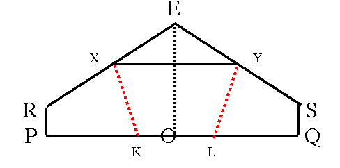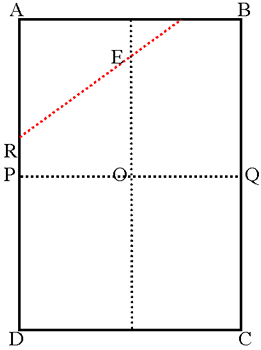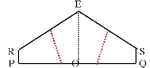 Fold R and S up to the centre line EO, so that they meet to form a straight line and make a pentagon.