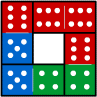 Is it possible to use all 28 dominoes arranging them in squares of four? What patterns can you see in the solution(s)?