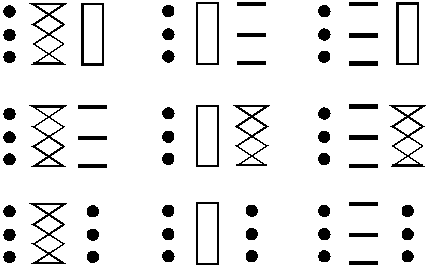 And for 3 colours there are 12, as given in the question. Rearranging the 12 solutions given into ones beginning with the same colour, I could see that each beginning had 4 different combinations. So with 3 colours the calculation is 3 x 4 = 12. Looking at 4 colours, I could see that from the logic in this, each beginning (like the dots as shown) would have 9 different combinations. There can be 4 beginnings as there are 4 colours, so altogether there are 4 x 9 = 36 flags.