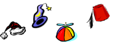 six different hats (what Ali has called pointy, wizard, crown, Santa, school and muslim)
