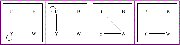The edges in these 4 graphs show the colour pairings of opposite faces of the cubes.