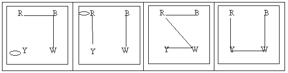 Another method is to use graphs. The edges in the graphs below join the colours that appear on opposite faces of the cubes.
