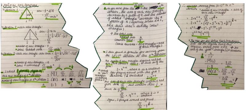 Prasangi, Thatcher, Nishad, William and Ci Hui Minh Ngoc Ong continued in this way to find the total area of each iteration. This is Nishad's work: