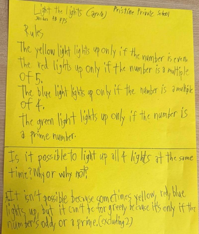 Here is a machine with four coloured lights. Each light responds to a rule.